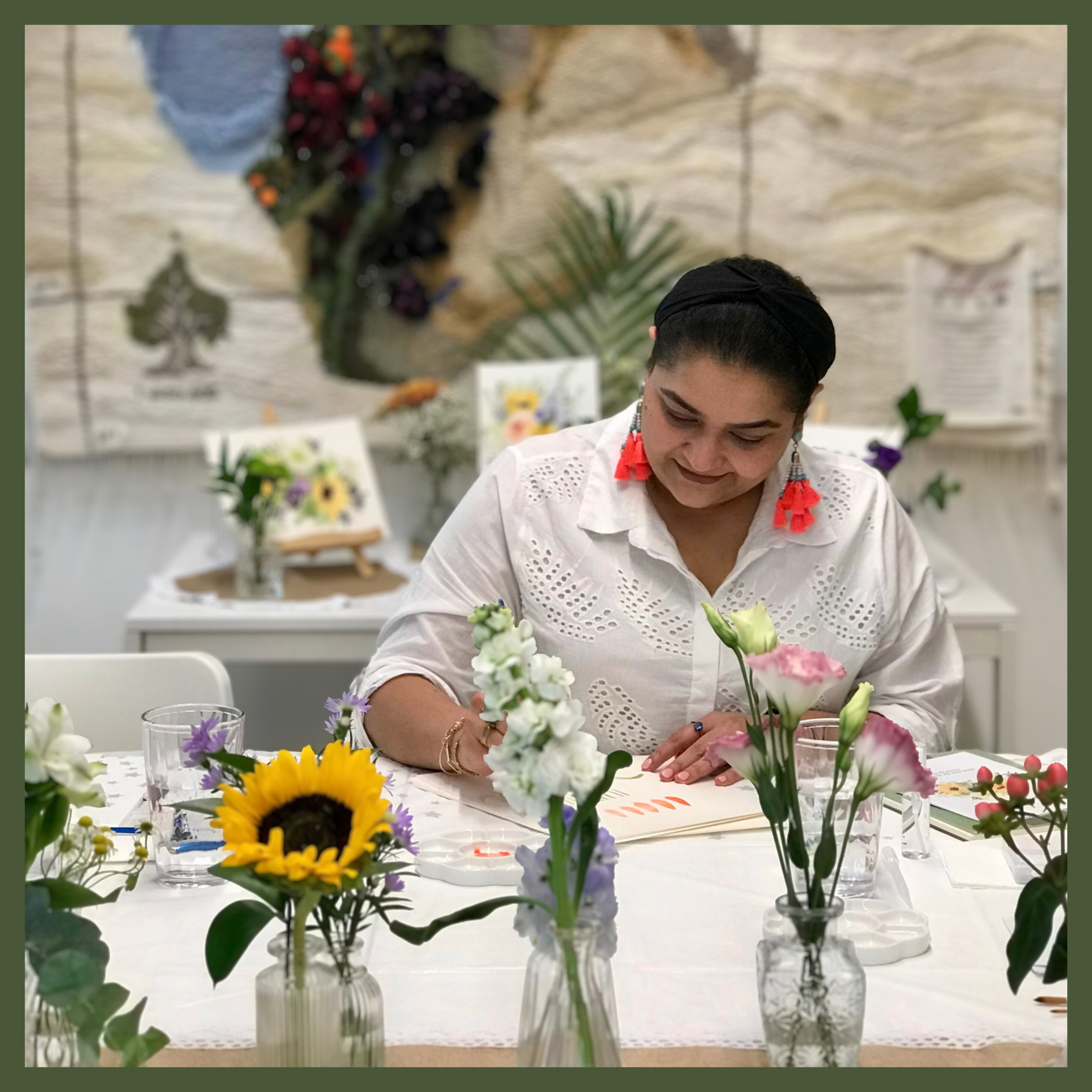 A premium watercolor workshop, focused on expressive floral painting using fresh flowers as reference. Designed for creatives and anyone eager to explore the world of watercolors. This thoughtfully guided session offers a space where creativity blooms and intuition flows through mindful observation and technique. Take home a small keepsake, handmade with love to remind you of an afternoon well spent.