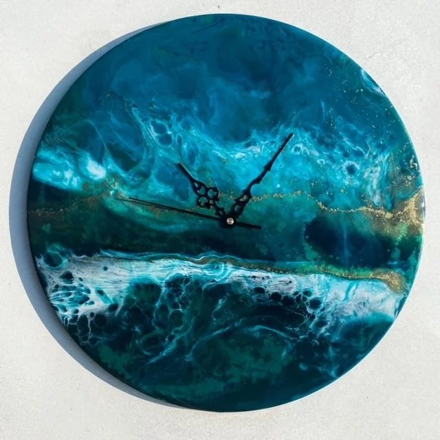 Learn the main techniques of Painting using Resin with Bwader Basheer and choose to create your own resin painting on either an irregular shaped MDF board (approximately 30 x 35 cm) and one coaster (10 cm diameter) OR a wall clock (40 cm diameter)