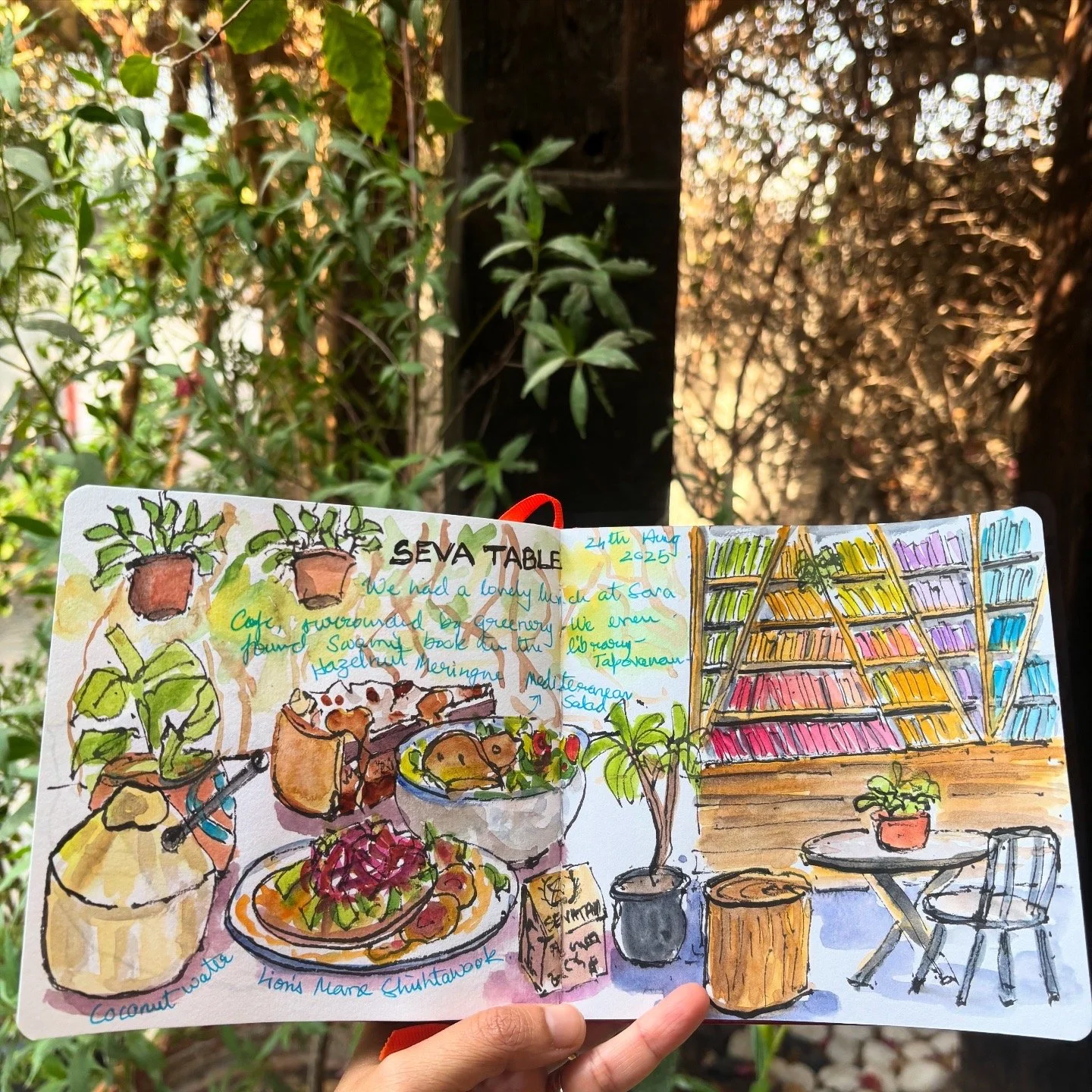 Priya Krishnan Das is an Illustrator, visual journalist and traveler, capturing daily snippets of life in her sketchbook. This includes drawing food, urban scenes, people and nature. Her belief is that everything becomes interesting and beautiful when you draw it, making life more enriching. Her motto is to teach people to confidently draw anything, anywhere, without inhibitions. Back in India, she traveled across the country capturing traditions, culture, tribes and food through her sketches and compiled it into a book, “75 Sketches Celebrating Bharat”. Having moved to UAE last year, she is delightfully exploring the rich local culturescape one sketch at a time, and hopes to contribute to the same through her work.